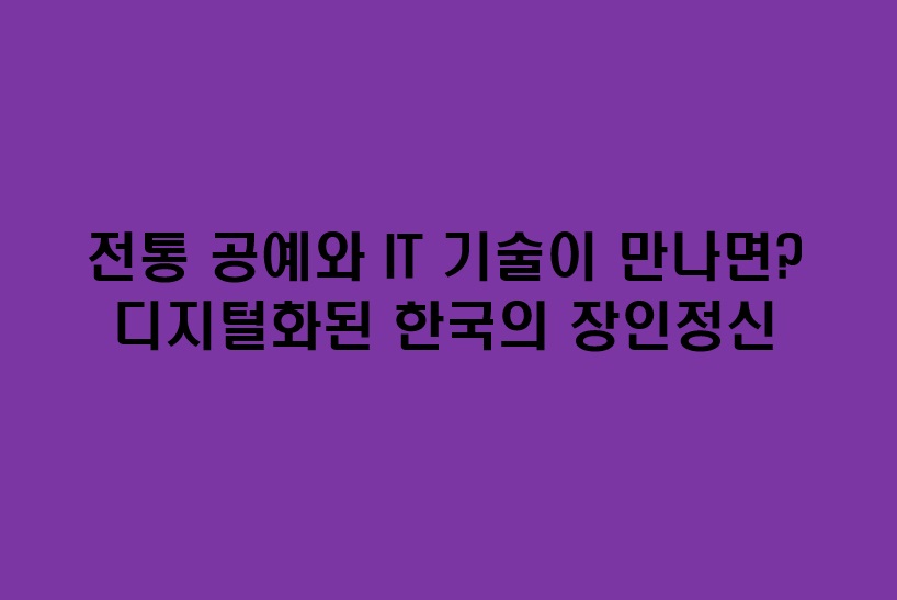 "전통 공예와 IT 기술이 만나면? 디지털화된 한국의 장인정신"에 대해 이야기 해볼께요.