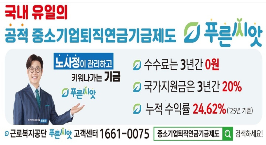 - 운영 주체: 일반적인 퇴직연금은 은행, 증권사 등 민간 금융기관이 운영하지만, 푸른씨앗은 국가 기관인 근로복지공단이 직접 운영하여 신뢰도가 높습니다.